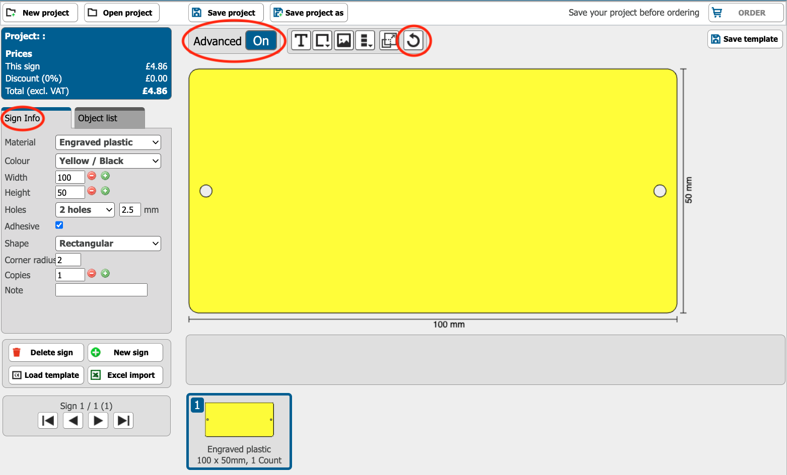 In our online tool, SignStudio Advanced (SSA), you can order any type of sign. Either with text only or with the addition of images and graphics. The tool therefore has two design modes depending on the edits you want to make: Advanced ON or Advanced OFF. This guide will walk you through each step of how to successfully order your signs with us.